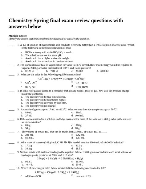 Read Online Chemistry Spring Final Exam Review With Answers Nook ManyBooks